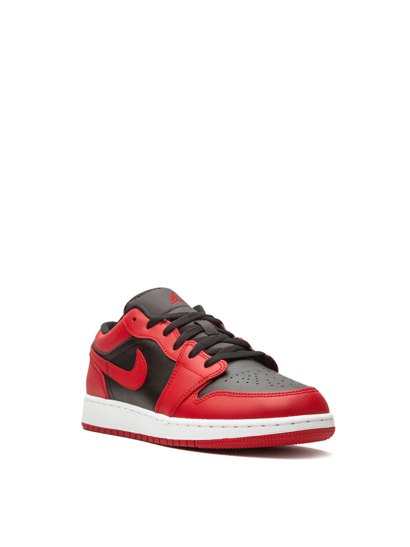 The Air Jordan 1 Low Reverse Bred for Grade Schoolers (GS) showcases a clean Chicago Bulls–inspired design. The Air Jordan 1 Low Reverse Bred GS features a black upper with red overlays, a red Swoosh logo running across both lateral and medial sides, and a black embroidered Jumpman and Wings on the tongue and heel, respectively. On the shoe’s sole, you’ll find a classic white rubber midsole to keep you comfortable and a red outsole to give you optimum traction.