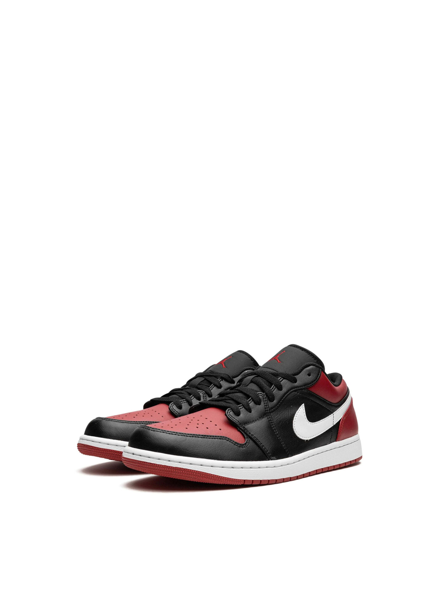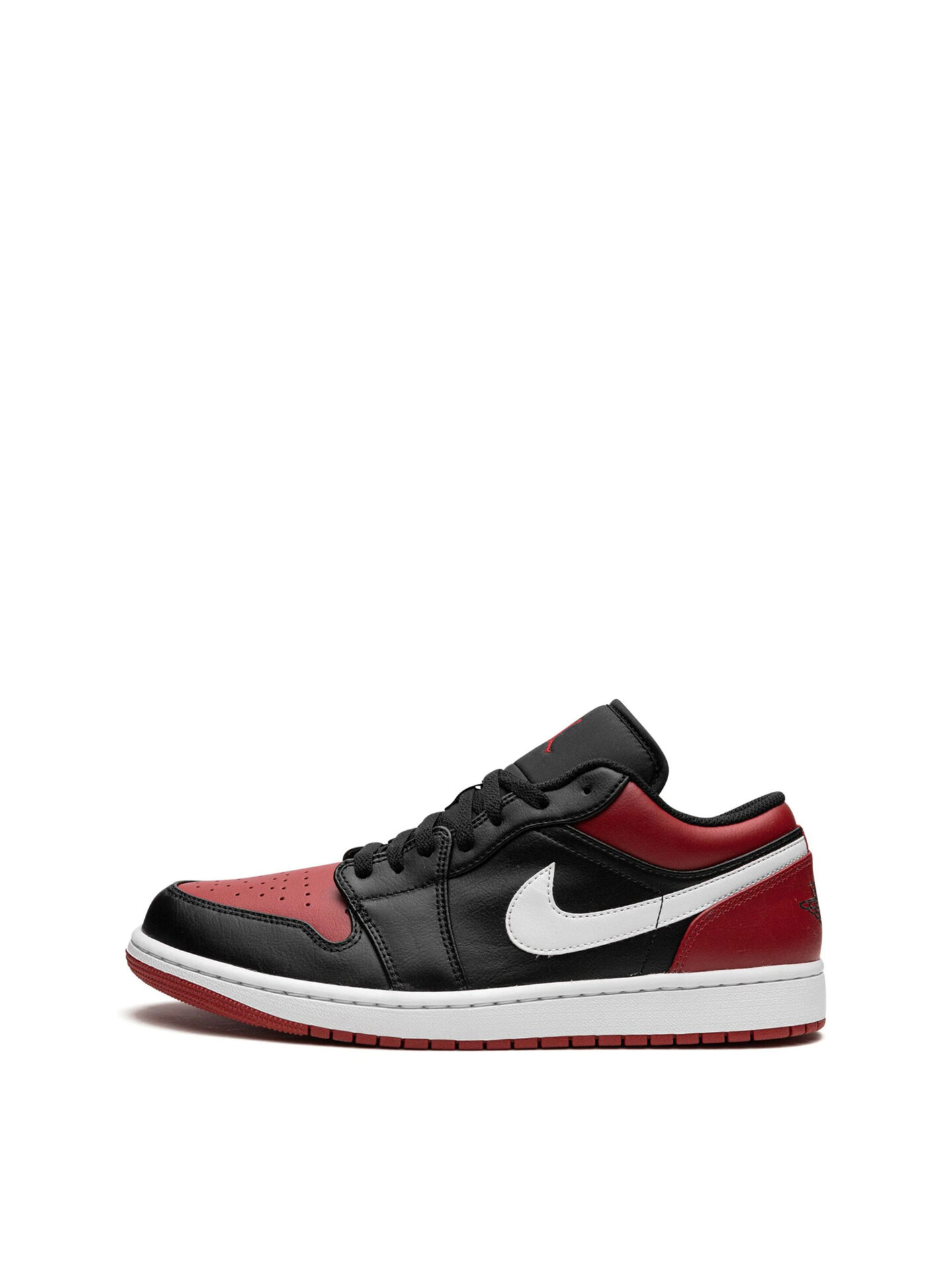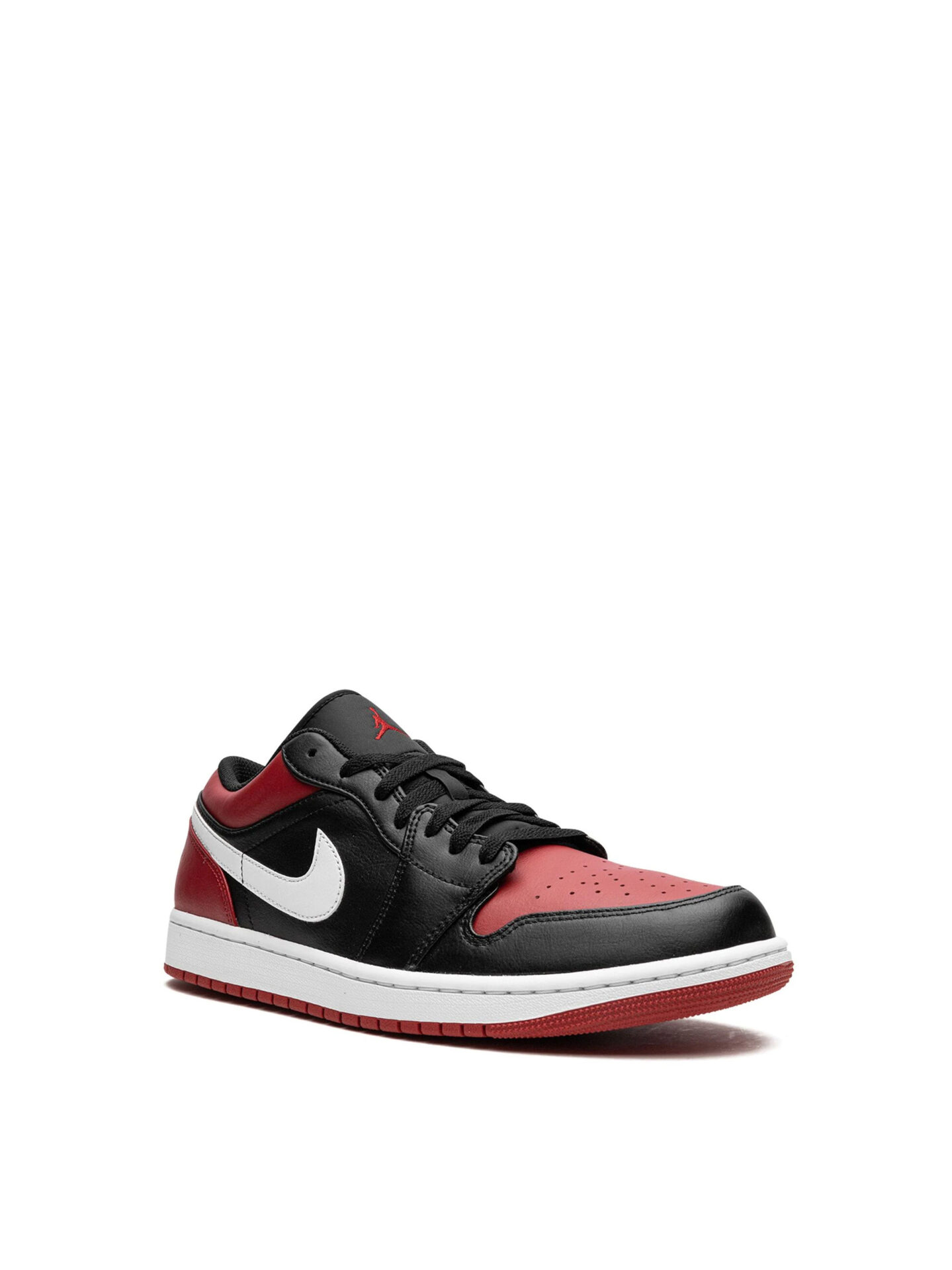 The Air Jordan 1 Low Alternate Bred Toe features a combination of Black, White, and Gym Red. Padded tongue & breathable toe box. Durable rubber outsole for court-ready grip.