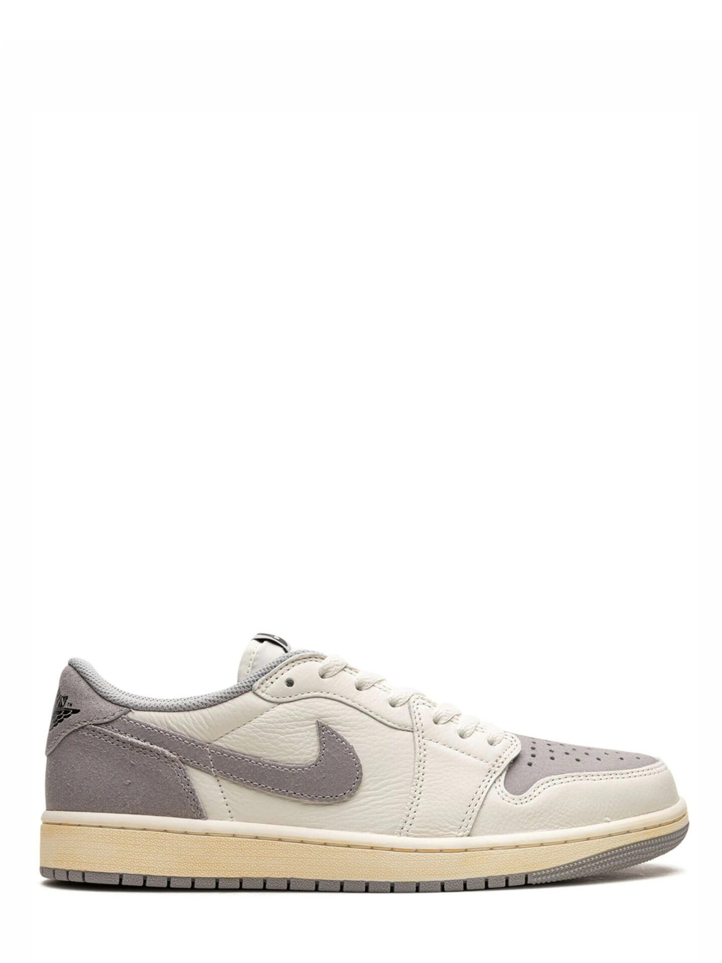 The Jordan 1 Retro Low OG Atmosphere Grey is a low-cut basketball-inspired sneaker that features a minimalistic design.