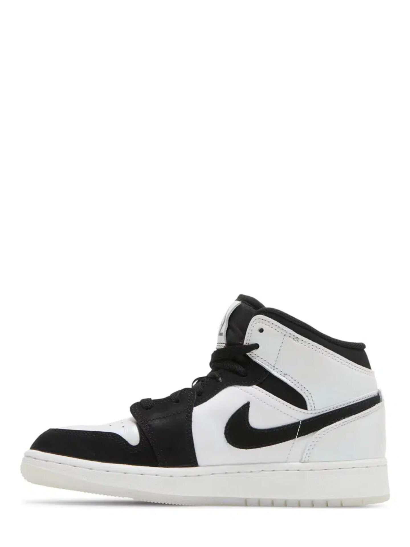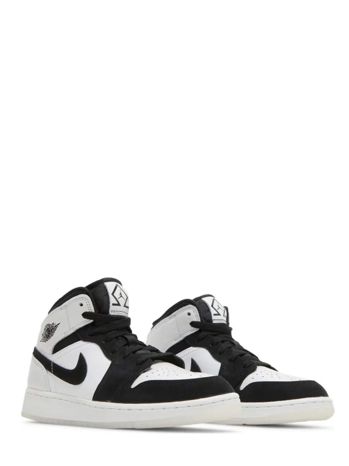 The Jordan 1 Mid Diamond Shorts arrives with a smooth white leather upper with black Durabuck overlays and Swooshes. At the ankle, a traditional Wings logo nods to the origins of the Air Jordan collection. A Jumpman woven tongue label and semi-translucent outsole add the finishing touch.
