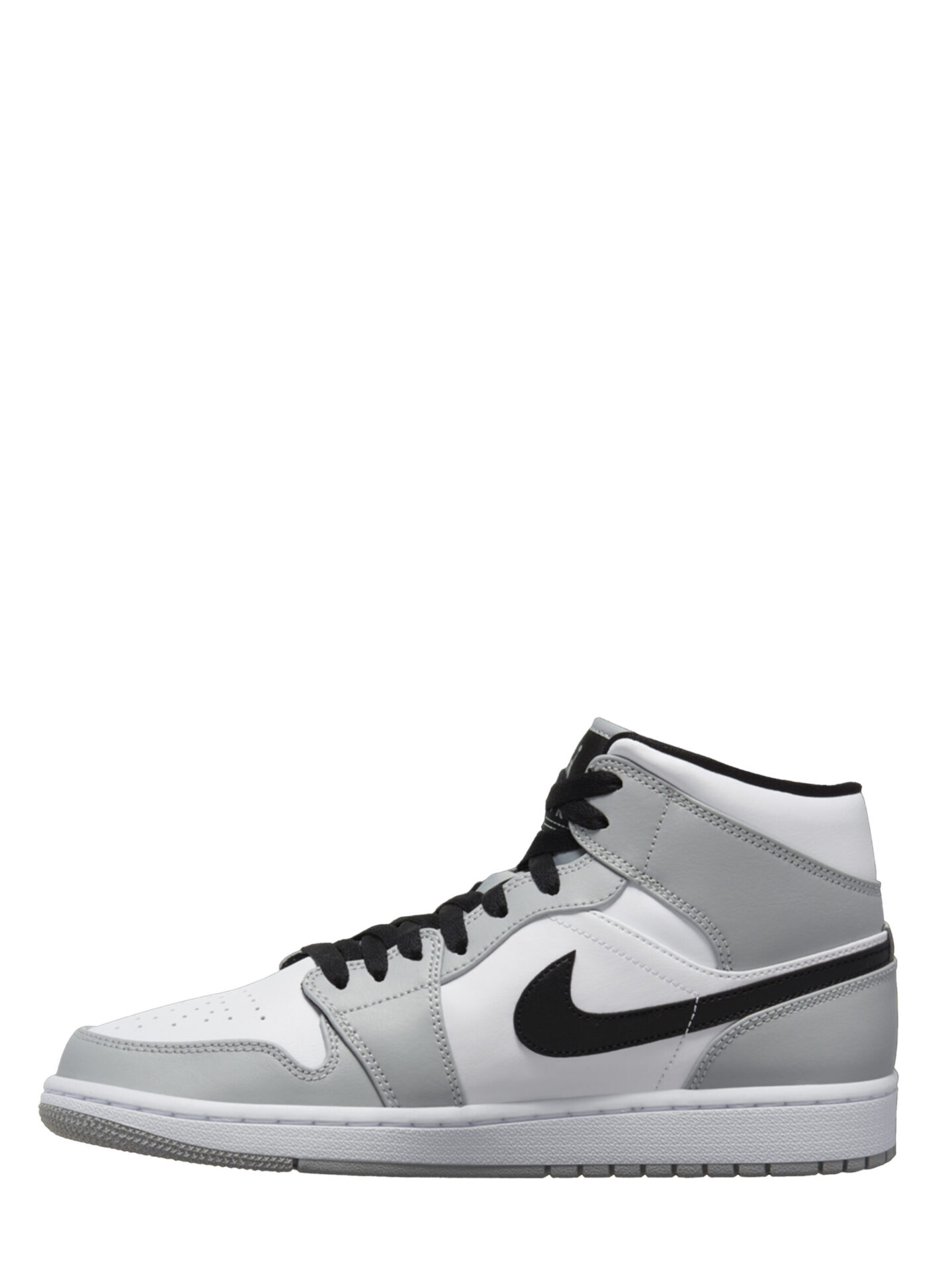 The Air Jordan 1 Mid Light Smoke Grey represents a neutral ground between high and low-cut models.