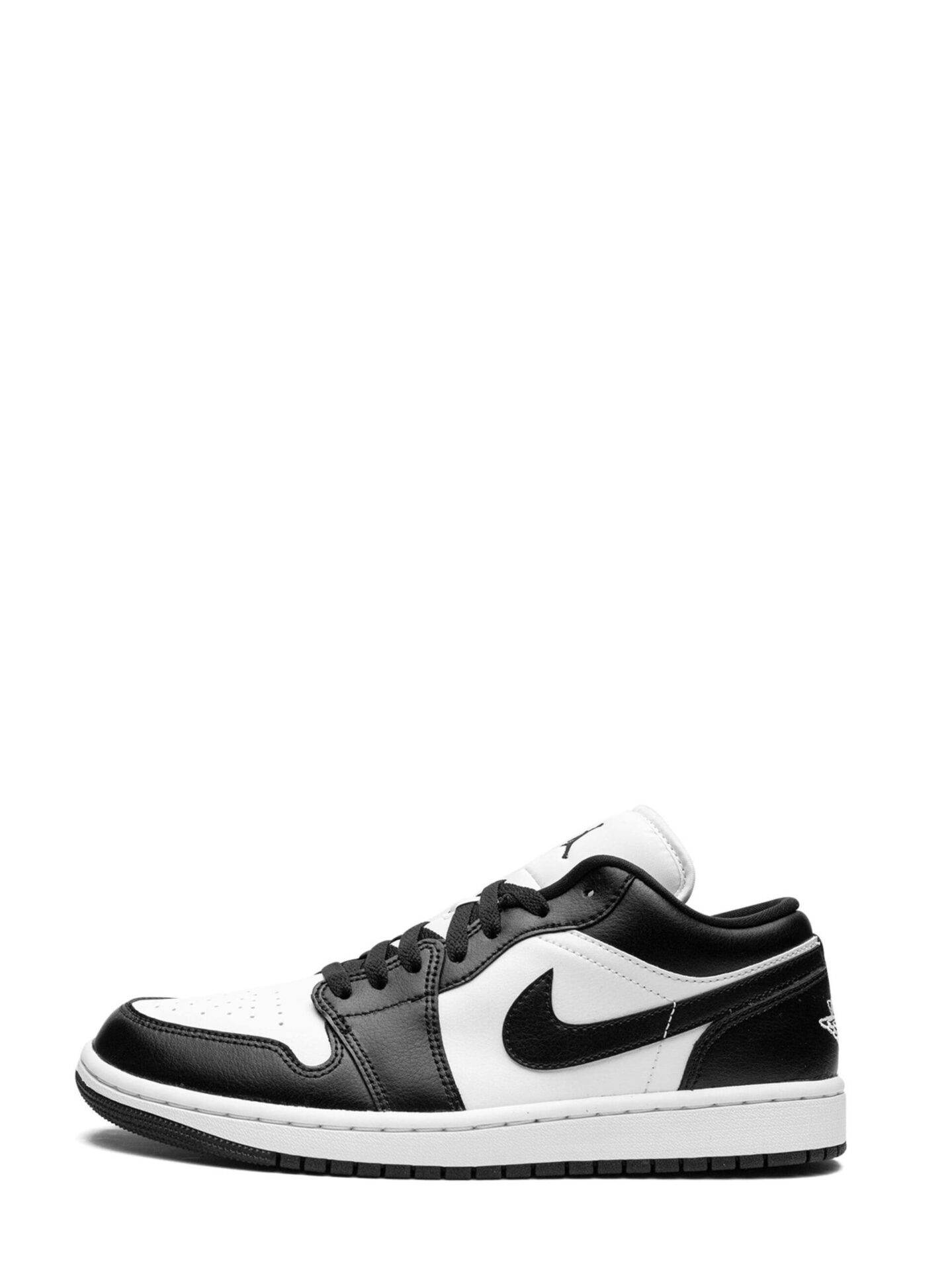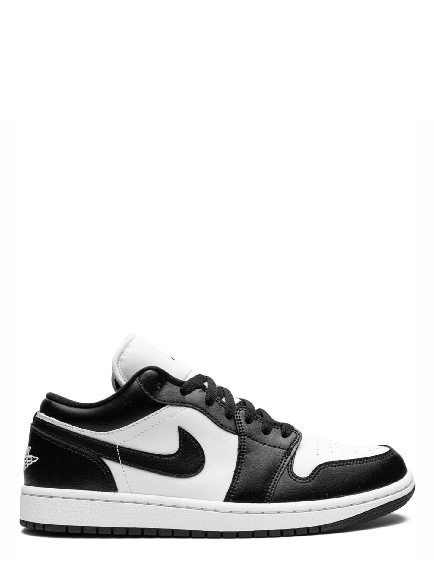 The Low Panda Jordan 1 (2023) (W) has an upper that is constructed from durable materials, including a combination of supple leather and suede. The shoe’s cushioned midsole and supportive collar ensure a comfortable fit. The outsole is made of a durable rubber material with a traditional tread pattern, providing traction and stability. The shoe’s toe box is perforated for ventilation. The sneaker features black Swoosh branding on either lateral side, the Jumpman logo on the tongue, and the Air Jordan Wings logo on the heel.