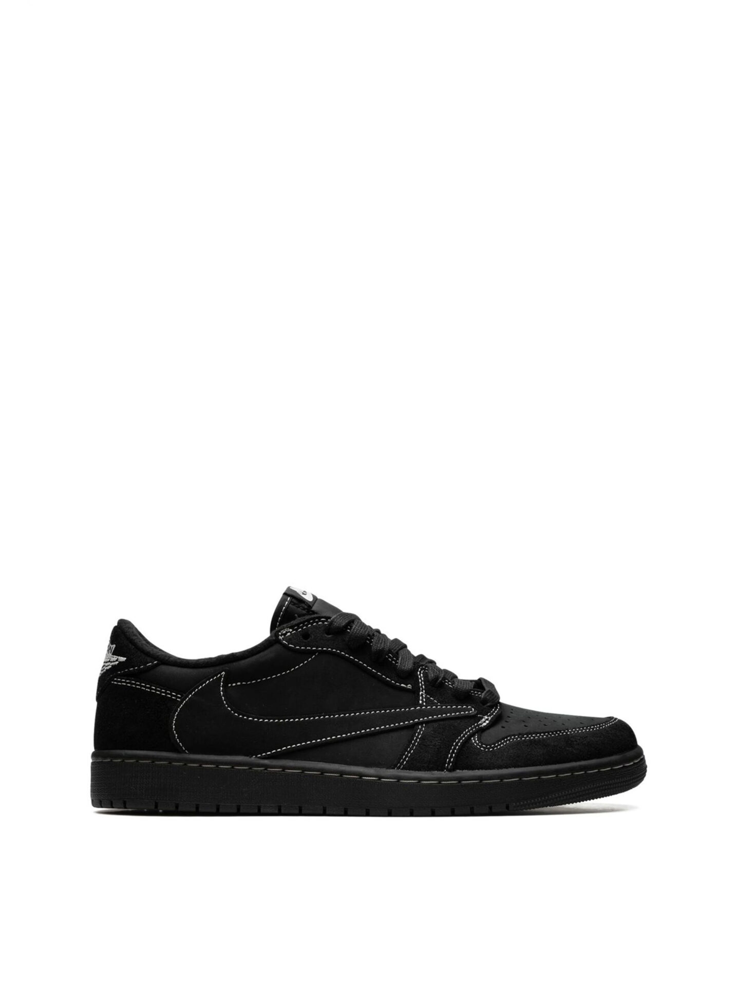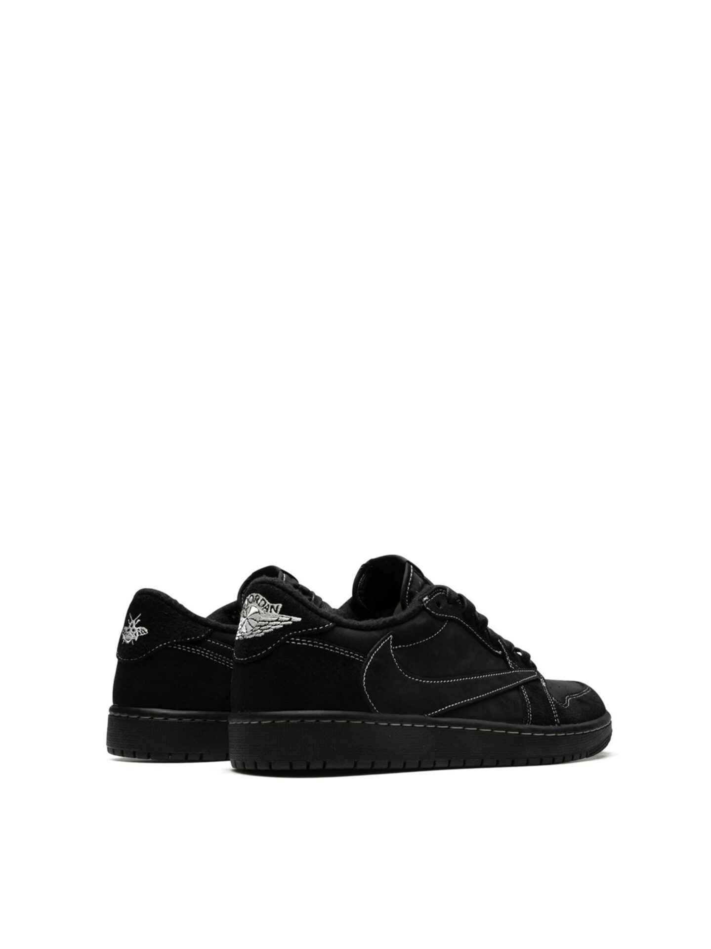 The silhouette returned with his signature backwards Nike Swoosh but with a new contrast stitch design. The all black nubuck sneakers feature a Nike Air logo on the tongue and an Air Jordan Wings logo on the right heel tab. Red, Black, and White/Black laces are included and an embroidered Bee is located on the heel tab of the left sneaker inspired by Travis’ daughter, Stormi.
