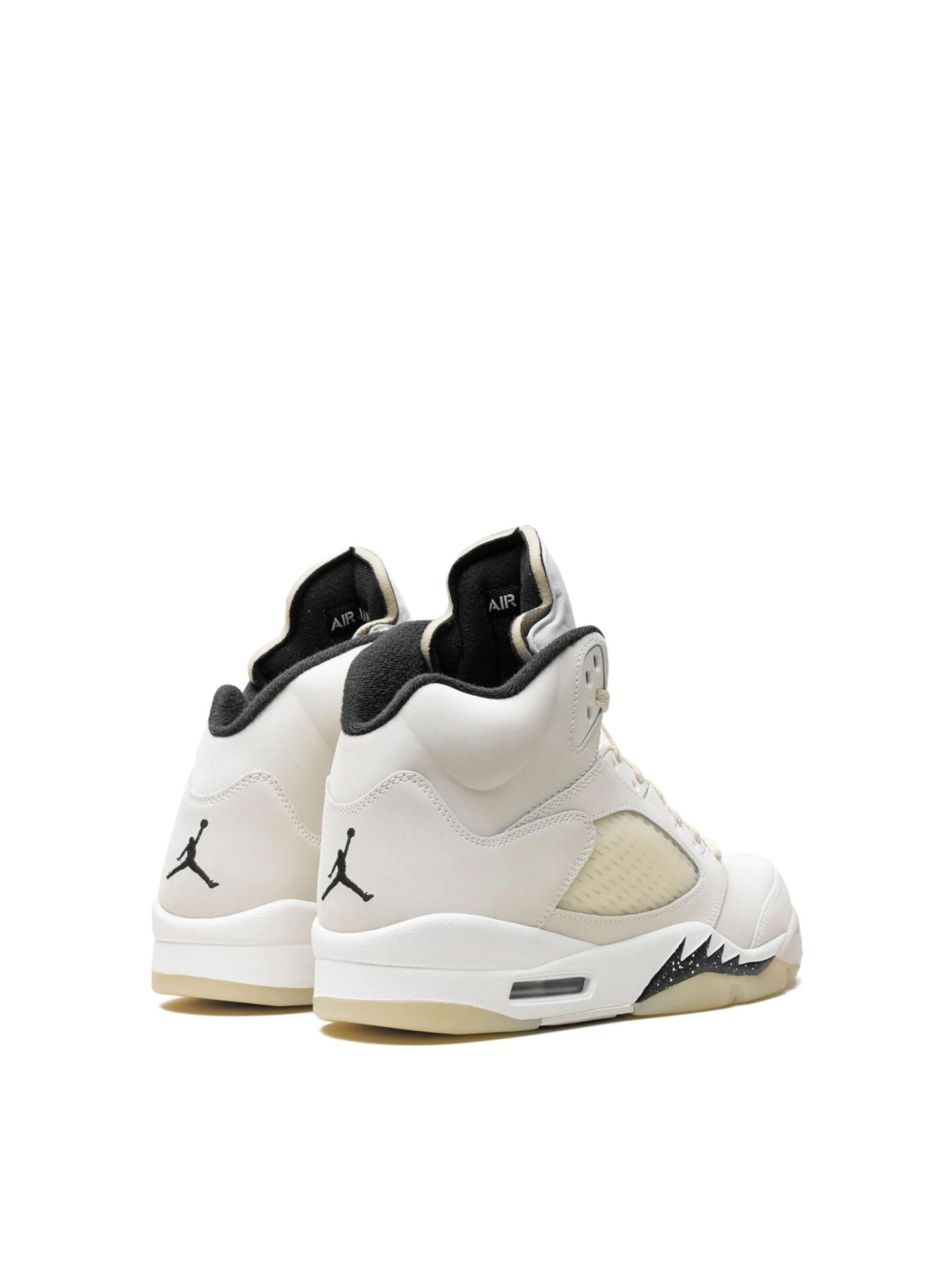 This version of the Jordan 5 Retro SE is made with premium material, including leather and textile cushioning. The upper of the shoe comes in a Sail beige color, which adorns the base and the overlays. On each side of the shoe under the laces there is a small window showcasing the white mesh cushion. Black detailing adorns the white rubber outsole under the forefoot, and there’s a visible Air unit in the heel. The Jumpman logo appears in black on the heel and on the tongue. The tongue is made of flat canvas for more flexibility of movement.