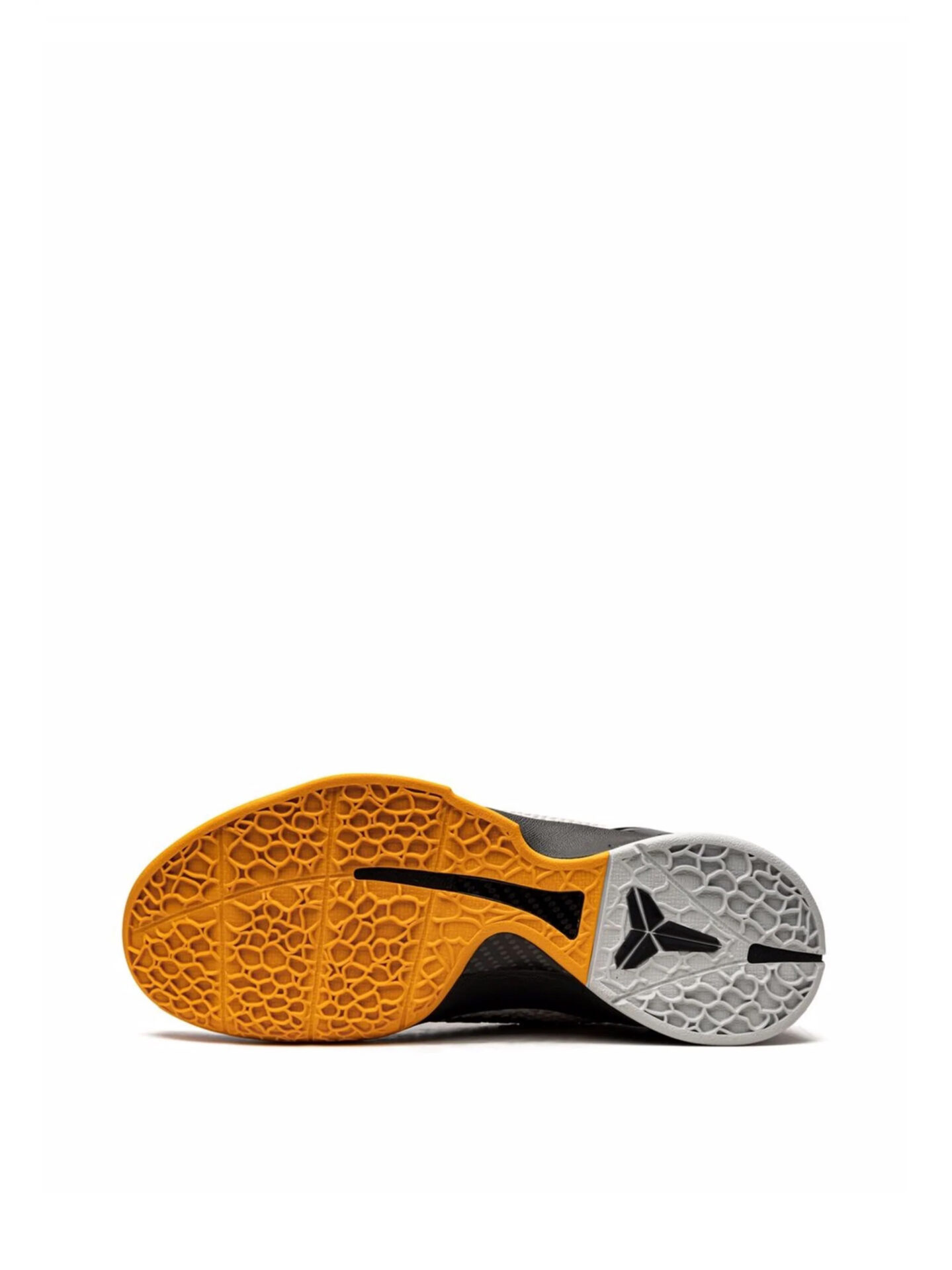 This sneaker has a white, neutral gray, del sol, and black color scheme. The polyurethane ‘islands’ create a texture on the grey and white upper. The shoe is fortified with a black molded heel counter and accented with a matching black Swoosh. The midsole has a large and flexible Air Zoom Turbo unit in the forefoot and a foam compound in the heel. Underfoot, rubber outsole has a snakeskin-inspired traction pattern and Kobe’s signature.