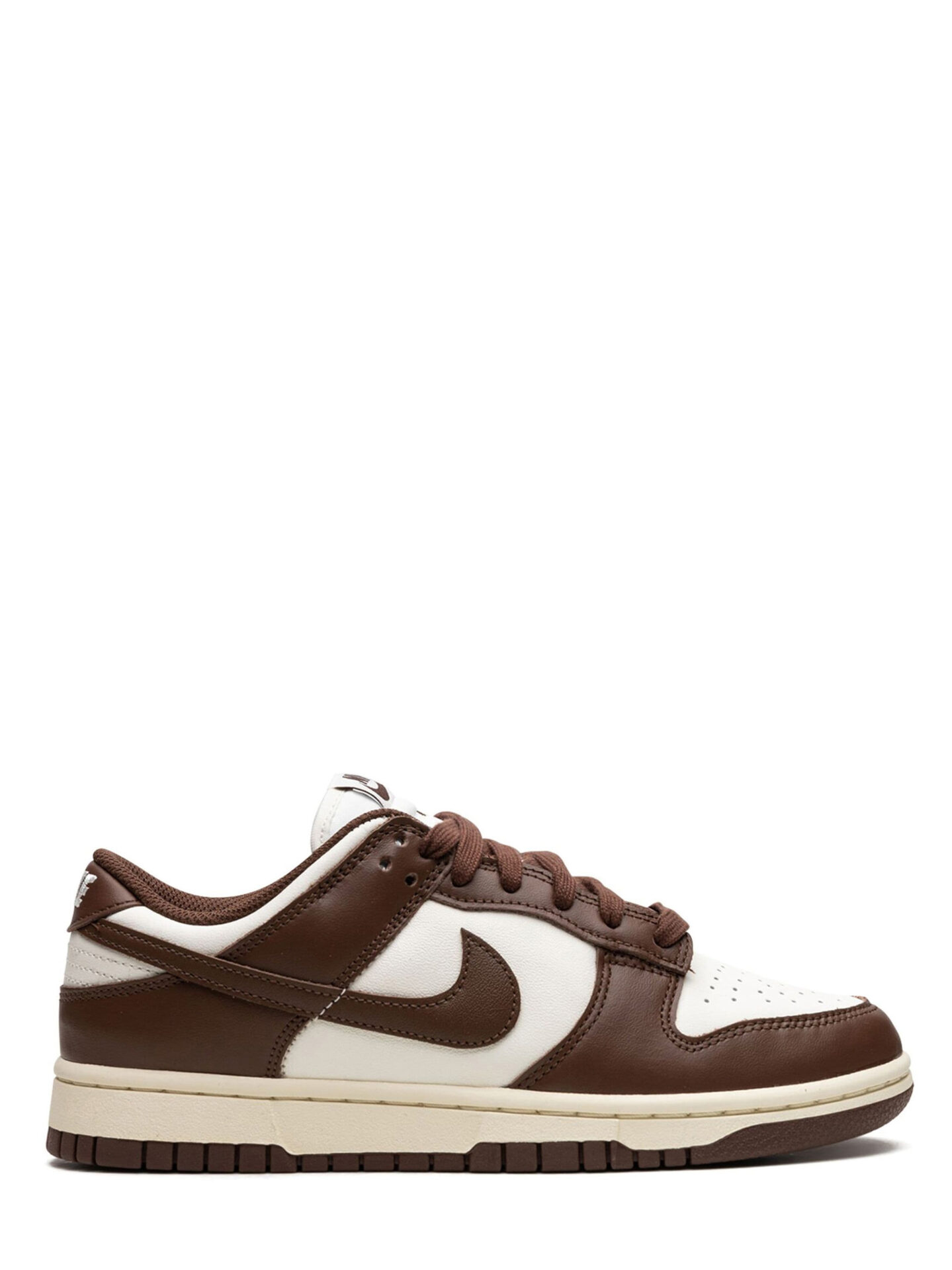 Crafted with buttery smooth leather, the upper sports a cool Cacao Wow finish, delivering a potent mix of style and comfort. This Dunk Low uses a light, creamy hue for contrast, adding just the right amount of pop.The Cacao Wow Dunk Low is set to turn heads and start conversations