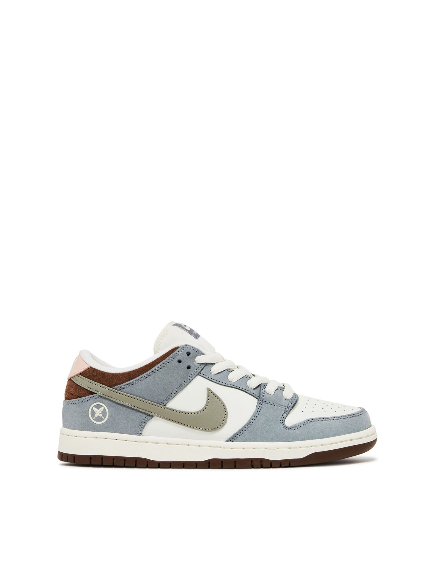 The Yuto Horigome Nike SB Dunk Low features a Sail leather upper, strengthened with Wolf Gray suede overlays on both the front and rear portions. It includes a leather Swoosh in a unique Iron Gray shade, and the branding elements consist of a double-feather graphic on the lateral heel. Additionally, ‘Y uto Horigome’ is prominently displayed on the tongue tag, denoting his association with Nike SB. The pink suede back tab is adorned with an embroidered Nike wordmark, creating a striking contrast with the low-cut padded collar made from brown suede. The sneaker’s foundation is firmly supported by a sturdy cup sole.