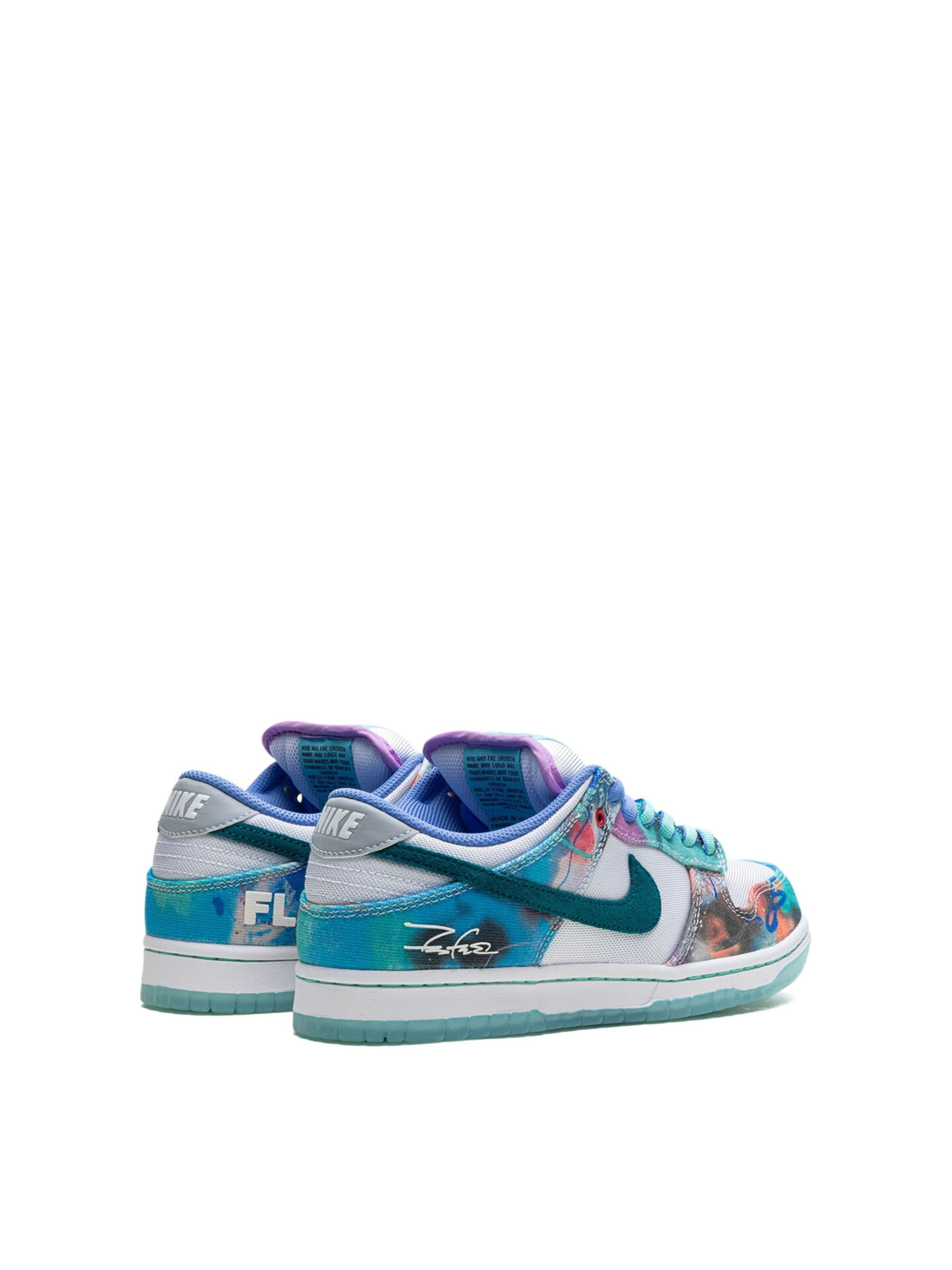Step into a world of art and innovation with the Nike SB Dunk Low Futura Laboratories Bleached Aqua. This sneaker is a masterpiece, blending iconic street art with top-tier skateboarding functionality. The canvas upper features a vibrant mix of Bleached Aqua, Geode Teal, and White, adorned with the dynamic strokes and splashes reminiscent of Futura’s signature street art. The design reflects a seamless fusion of creativity and urban edge, with Futura’s distinctive signature and the “FL” emblem proudly displayed on the heel